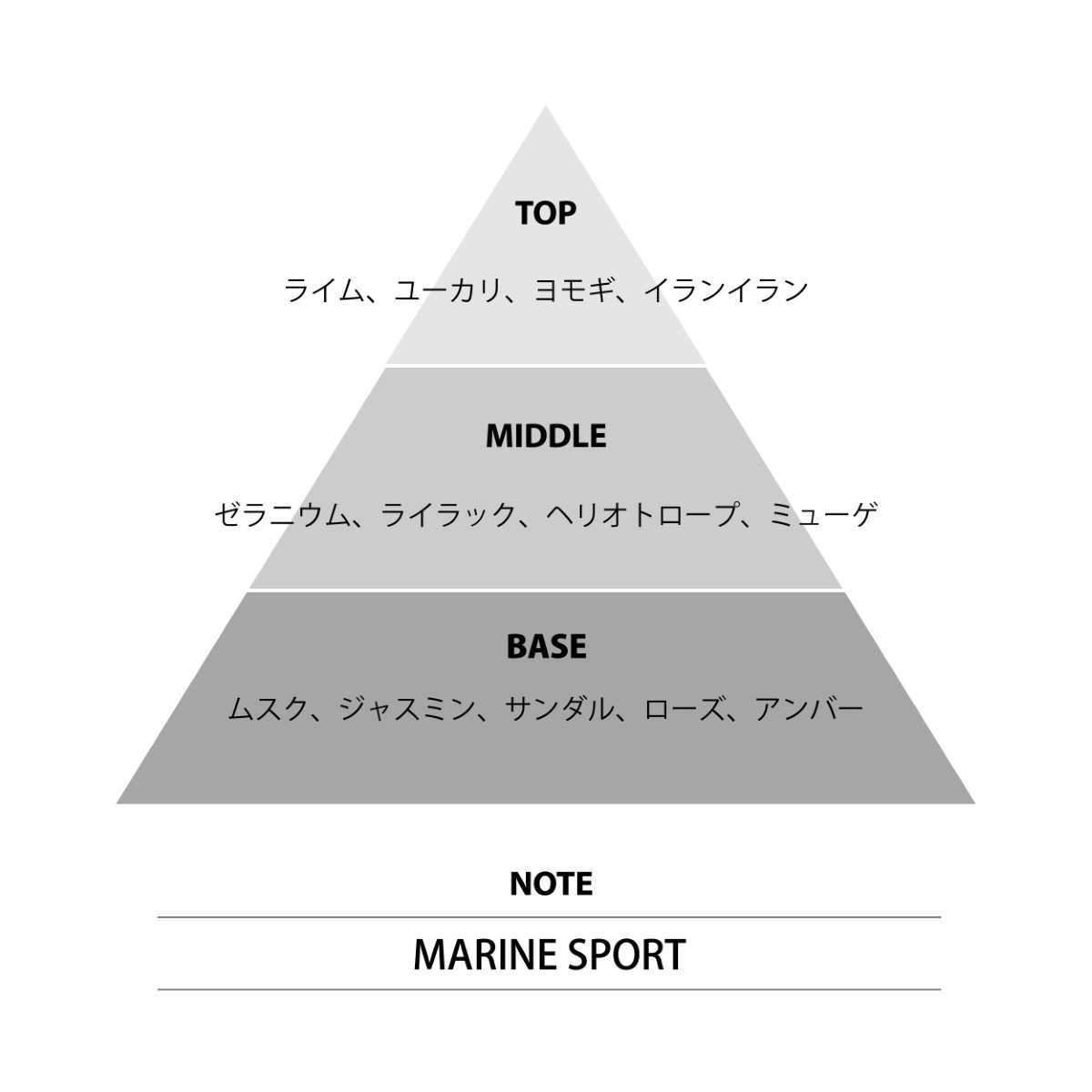 ミューゲやヘリオトロープ、そしてジャスミンなどのホワイトフローラとフレッシュライムの組み合わせに、官能的なムスクを加えた、透明感のあるMARINE調の香り