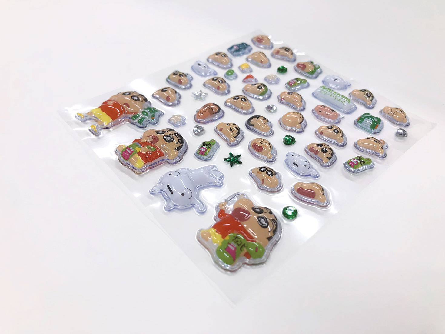 「クレヨンしんちゃん」のぷっくり立体プチパーツ。ジッパーケース入り。