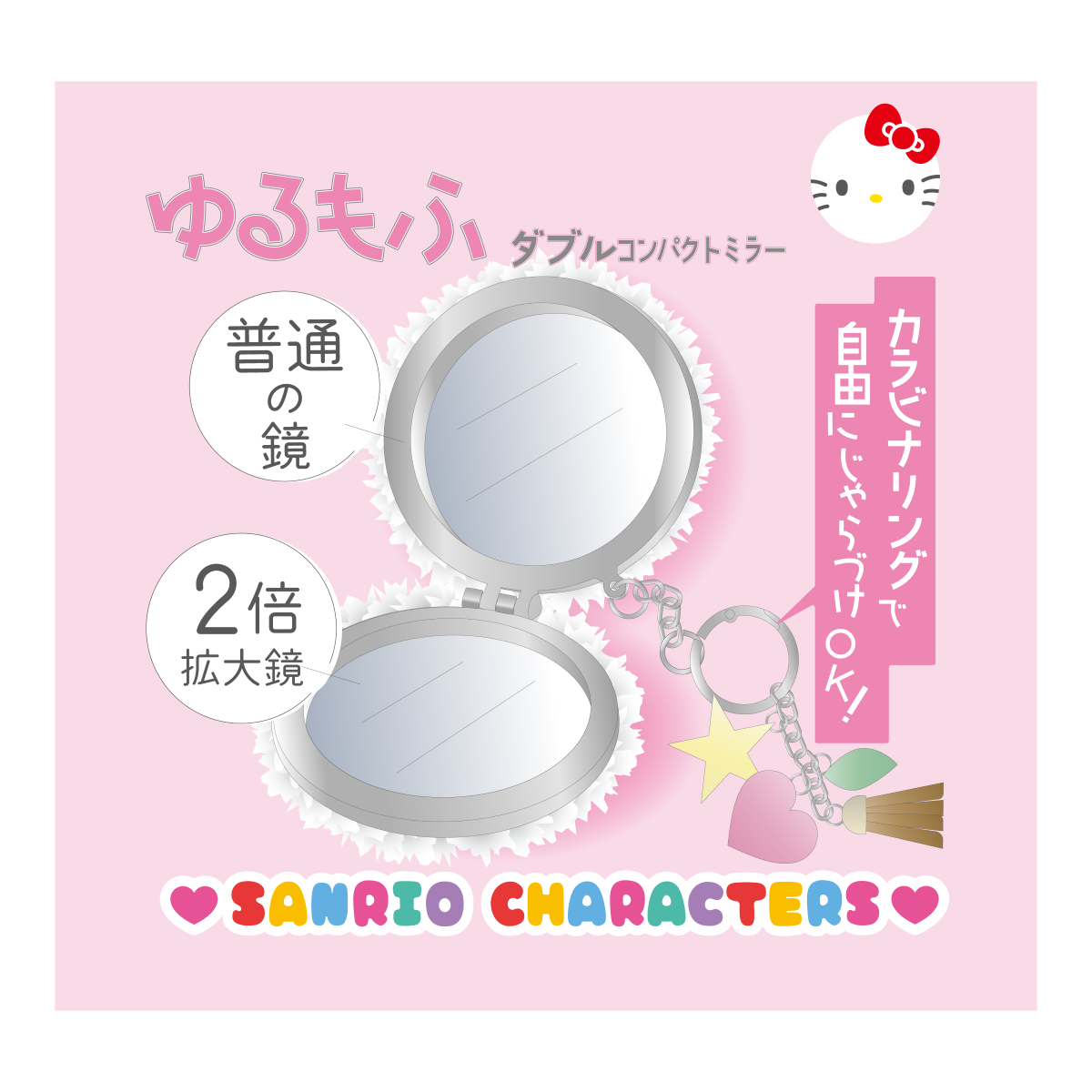 ゆるもふダブルコンパクトミラーキーチェーン/クロミ